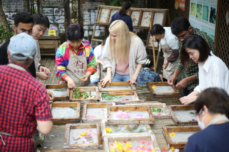 留学生在内射毛片内射国产夫妻国际学生文化实践基地体验古法造纸