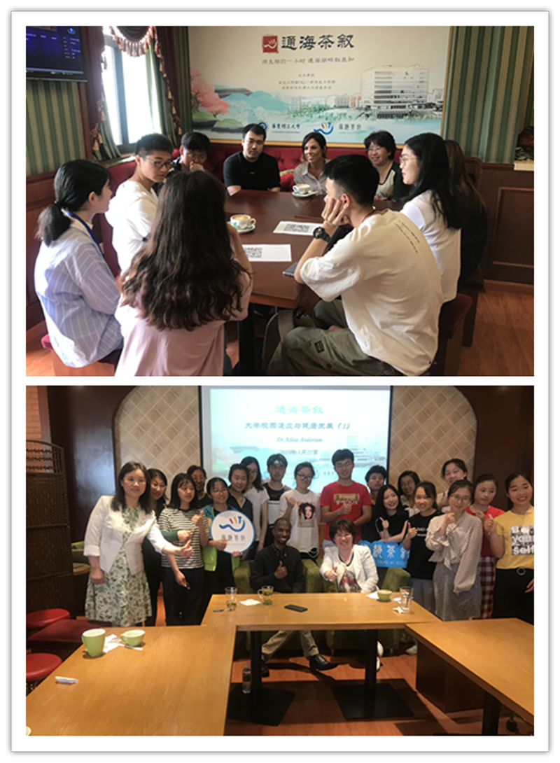 Dr. Adisa Anderson and Dr. Cynthia Medina joined the “Tonghai Tea Talk” event theme as “University Campus Adaptation and Healthy Development” at Fengxian Campus of ECUST on May 27th, 2019. The two American guests shared their campus life and their adaptation to the University of California at Berkeley with the ECUST students. Later, they joined the seminar on the topic of “Career Crisis Prevention, Assessment and Intervention” with psychological consultants from universities in the Fengxian gulf area.